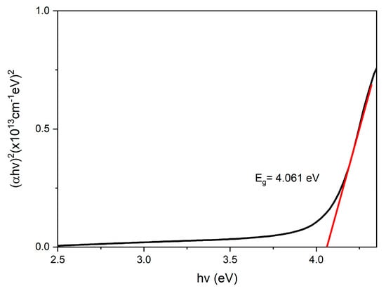 where a is the absorbance coefficient stated in units of m−1, and t represents the sample thickness in meters (m). Then, the Tauc equation was followed []: