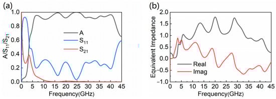 The MA’s (a) absorptance, S11 and S21; (b) equivalent impedance.