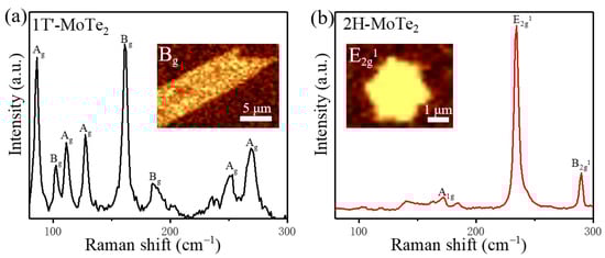 - Kan, M.; Nam, H.G.; Lee, Y.H.; Sun, Q. Phase Stability and Raman Vibration of the Molybdenum Ditelluride (MoTe2) Monolayer. Phys. Chem. Chem. Phys. 2015, 17, 14866–14871. [Google Scholar] [CrossRef] [PubMed]
