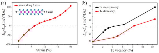 - Huang, H.H.; Fan, X.; Singh, D.J.; Chen, H.; Jiang, Q.; Zheng, W.T. Controlling Phase Transition for Single-Layer MTe2 (M = Mo and W): Modulation of the Potential Barrier under Strain. Phys. Chem. Chem. Phys. 2016, 18, 4086–4094. [Google Scholar] [CrossRef]