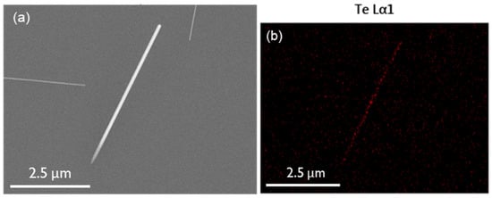(a) SEM image and (b) EDS mapping of tellurium nanowires in sample Te-A2.