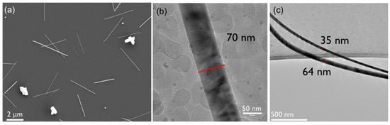 - Gudiksen, M.S.; Wang, J.F.; Lieiber, C.M. Synthetic control of the diameter and length of single crystal semiconductor nanowires. J. Phys. Chem. B 2001, 105, 4062–4064. [Google Scholar] [CrossRef]