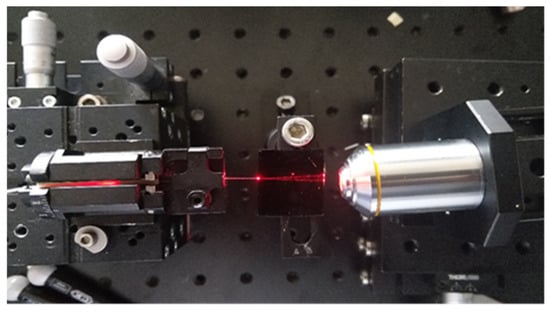 The operability of the optical waveguides was initially tested by coupling the optical waveguides to a single mode laser diode tuned at 635 nm at an intensity of 2.5 mW, through an optical fibre (Figure 3A). To ensure the output from the waveguides was visible it was magnified using a ×10 objective lens.