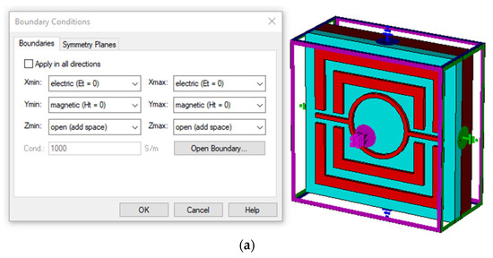 The proposed MMA’s PCR value was determined to verify that the proposed MMA is not a polarization converter but an absorber. As shown in Figure 9a, we demonstrated both co-polarization and cross-polarization components with the help of Equation (6). It is clear from Figure 9 that the cross-polarization component is nearly 0 on the linear magnitude scale. Thus, it was ensured that no waves were converted by this design.