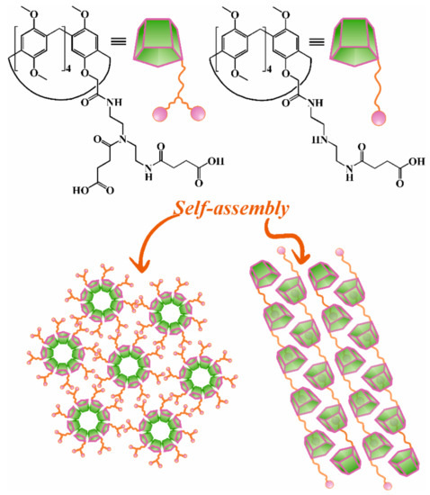 - Zhang, H.; Liu, Z.; Zhao, Y. Pillararene-based self-assembled amphiphiles. Chem. Soc. Rev. 2018, 47, 5491–5528. [Google Scholar] [CrossRef]