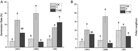Pollen germination rate (%) = number of germinated pollen/total pollen × 100%