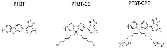 Structure of PFBT, precursor PFBT-C6 and the polyelectrolytes PFBT-CPE [].