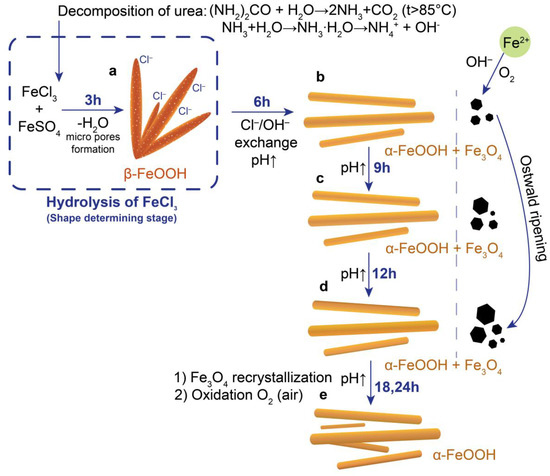 - Karami-Darehnaranji, M.; Taghizadeh, S.-M.; Mirzaei, E.; Berenjian, A.; Ebrahiminezhad, A. Size tuned synthesis of FeOOH nanorods toward self-assembled nanoarchitectonics. Langmuir 2020, 37, 115–123. [Google Scholar] [CrossRef]