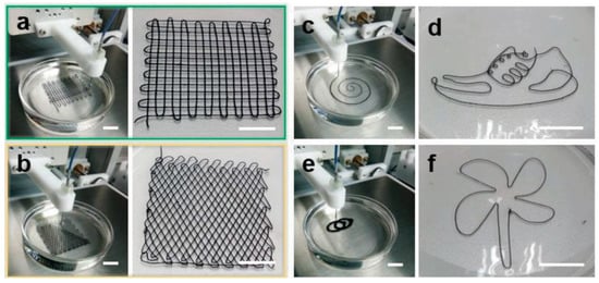 - Hassan, K.; Nine, M.J.; Tung, T.T.; Stanley, N.; Yap, P.L.; Rastin, H.; Yu, L.; Losic, D. Functional inks and extrusion-based 3D printing of 2D materials: A review of current research and applications. Nanoscale 2020, 12, 19007–19042. [Google Scholar] [CrossRef] [PubMed]