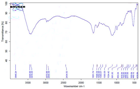 The FT-IR spectrum of the zirconium magnetic nanocomposite, as shown in Figure 4, proved the desired absorptions of the final product’s structure.