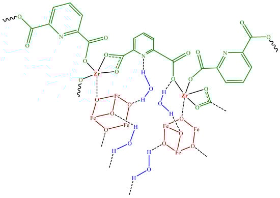 Based on the observations and spectral analysis, the following structure was suggested for the zirconium magnetic nanocomposite (Figure 6).