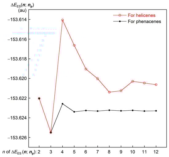 Plot of ΔEES(n) and ΔEES(np) versus n, evaluated with M06-2X/6-311+G(3d,p), where ΔEES(n) = EES(n) − EES(n − 1) and ΔEES(np) = EES(np) − EES(np − 1).