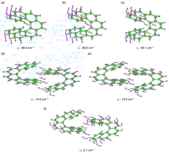 The H-∗-H, C-∗-H, and C-∗-C interactions of dimers 6:6 and 7:7 were similarly analyzed. The interactions were predicted to have a p-CS/vdW nature, although 6:6 (1Hbay-∗-17’Hcape) has a nature close to p-CS/t-HBnc, since (θ, θp) = (72.6°, 88.1°). The interactions at 3–12 and 6:6 and 7:7 were predicted to be much weaker than expected. The very low energy of ν1 of 7:7 supports the very weak nature predicted for interactions and the easy dependence of the levels on the nature of the interactions. The strength of the interactions can also be estimated by the Cii−1 values. Detecting the interactions and predicting the nature of helicenes will provide a solid basis for investigating and applying the interactions in helicenes.
