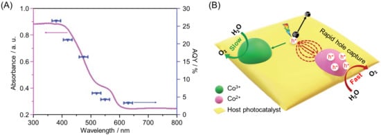 - Xiao, S.Y.; Liu, Y.; Wu, X.F.; Gan, L.T.; Lin, H.Y.; Zheng, L.R.; Dai, S.; Liu, P.F.; Yang, H.G. A Low-Valent Cobalt Oxide Co-Catalyst to Boost Photocatalytic Water Oxidation via Enhanced Hole-Capturing Ability. J. Mater. Chem. A 2021, 9, 14786–14792. [Google Scholar] [CrossRef]