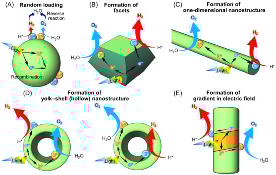In this review, we have categorized methods for the fabrication and functionalization of Vis-light-driven water-splitting photocatalysts according to our viewpoint. Therefore, this categorization might differ from previous reviews [44,49,51,80,81,82,83,84,85,86,87,88,89,90]. Furthermore, as this review was written for readers not previously involved in water-splitting photocatalysis, methods used to prepare each photocatalyst and analyze their properties are not described. Therefore, readers interested in details of these experiments are referred to the original papers cited.