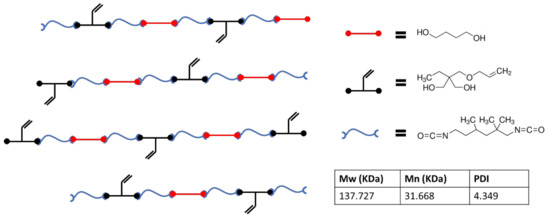 Schematic representing the thermoplastic polymer chemistry utilized during this study along with GPC data on the synthesized polymer.