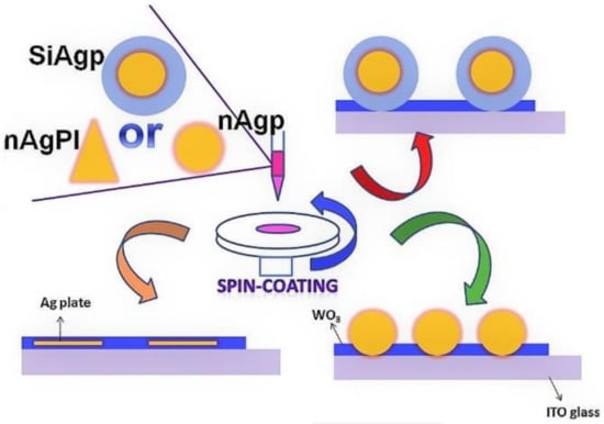 Schematic representation of different silver nanoparticles structures/WO3 layers by spin coating. Adapted with permission from [141]. Copyright 2016, Elsevier.