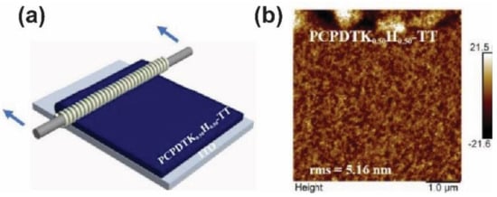 - Jo, W.J.; Nelson, J.T.; Chang, S.; Bulović, V.; Gradečak, S.; Strano, M.S.; Gleason, K.K. Oxidative Chemical Vapor Deposition of Neutral Hole Transporting Polymer for Enhanced Solar Cell Efficiency and Lifetime. Adv. Mater. 2016, 28, 6399–6404. [Google Scholar] [CrossRef]