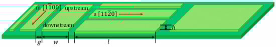 - Narita, T.; Honda, Y.; Yamaguchi, M.; Sawaki, N. The surface diffusion of Ga on an AlGaN/GaN stripe structure in the selective MOVPE. Phys. Status Solidi B 2006, 243, 1665–1668. [Google Scholar] [CrossRef]