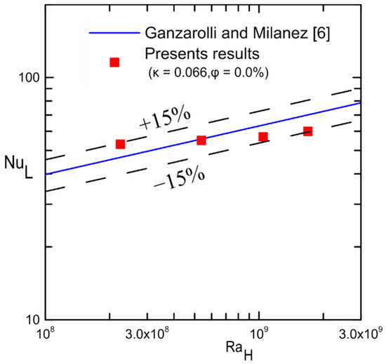 The thickness (H) of the cavity was used as a characteristic length in Equations (11) and (12).