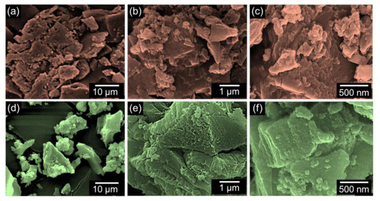 FE-SEM images of (a–c) HH-AC-600 and (d–f) HH-AC-700.