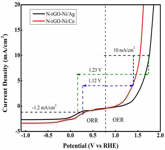 Chicago/Turabian StyleArif, Muhammad, Salma Bilal, and Anwar ul Haq Ali Shah. 2022. "Fabrication and Integration of Functionalized N-rGO-Ni/Ag and N-rGO-Ni/Co Nanocomposites as Synergistic Oxygen Electrocatalysts in Fuel Cells" Nanomaterials 12, no. 4: 585. https://doi.org/10.3390/nano12040585