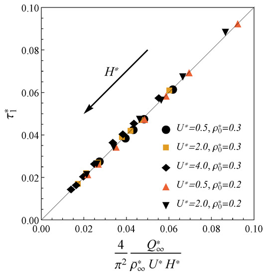 Here, is the total final density; the coefficient is obtained from the comparison with the TLM. The potentials considered here (up to 0.1 V in dimensional terms) correspond to the lower range of the values used in the modern experiments [45,46,47], but are significantly beyond the formal applicability range of the TLM [24]. To compare result Equation (11) with TLM relaxation time we consider the limit of large pores () at extremely low potentials (). Unlike nano-confinement, in this limit, the total density is almost constant , and the charge can be calculated from the linearization of the Gouy–Chapman theory , where is the Debye length. Inserting these approximations in Equation (11), we obtain , where is the ratio of pore cross-sectional area to perimeter. Expression fits the TLM relaxation time from ref. [24]. Significantly, such assumptions are not relevant to nanopores charging due to the properties of the confined electrolyte. For example, the total charge Q becomes an oscillating function of H, average densities strongly depend on the ion sizes, and electrostatic correlations play a crucial role. Thus, our result Equation (11) generalizes the TLM predictions for the case of the charging in nanopores at moderate potentials. Thus, our approach is more general than standard TLM since it describes the charging at realistic nanopores conditions.