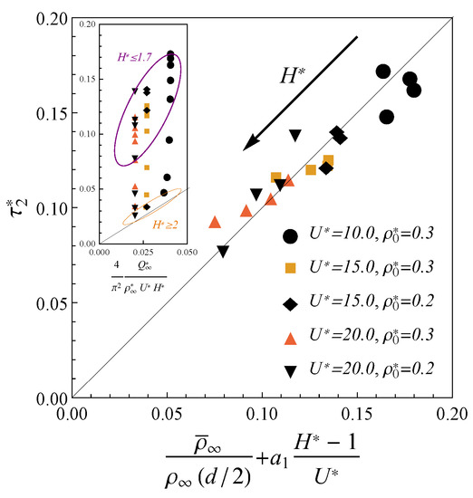 where is the wall-contact density at the final state of complete charging and is the fitting parameter. The inverse dependence of charging time (13) on the potential U contributes as the pore’s width increases. This behavior is consistent with the high potential limit () of expression (11), which fits the data well around .