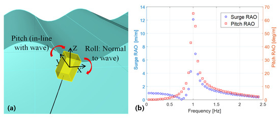 Figure 5. Motion analysis for the buoy (a) The effective rotation of the buoy; (b) The response amplitude operator of the buoy.