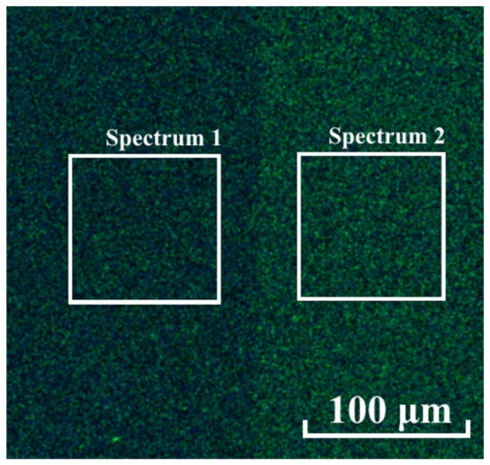 Chemical mapping experiments have shown that these areas differ in chemical composition (Figure 10). In the untreated (right) area, the contents of the main elements Al, N, and O were, respectively, 44.2, 40.2, and 3.5%, whilst in the polished (left) area, the contents were, respectively, 43.2, 39.4, 5.8%. It is also worth noting the different carbon contents in these areas, although the sample was wiped with ethyl alcohol before loading into the microscope, which could change the chemical composition. It should be noted that the EDX map was mirrored due to the peculiarities of the experiment.