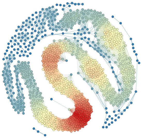 One other parameter, which we looked at in MOFSocialNet, is community detection [28,29,30,31,32,33,34]. Community detection is essentially a type of clustering problem. Community detection aims to group the nodes according to the relations between them to form strongly related sub-graphs from the entire graph. For example, detection of communities holds an important place in the analysis and functional prediction of the interaction networks between proteins and other molecules in biological cells [21] or to predict and identify disease genes.