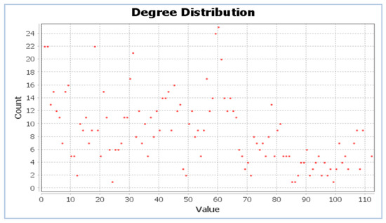 Degree distribution of the MOFSocialNet—the degree distribution is the probability distribution of node degrees over the whole network.