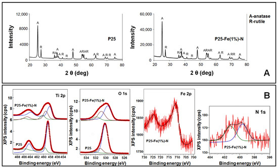 | P25-Fe(1%)-N | 3.7876 | - | 9.5139 | 28.6 | Anatase (83.0) |