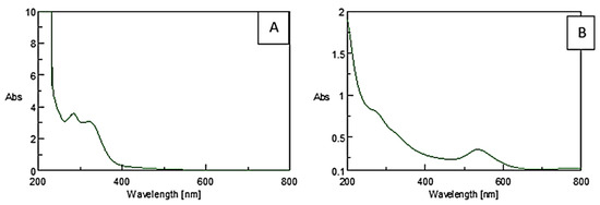 UV-Vis spectra of (A) plant extract and (B) AuNPs synthesized using M. piperita.