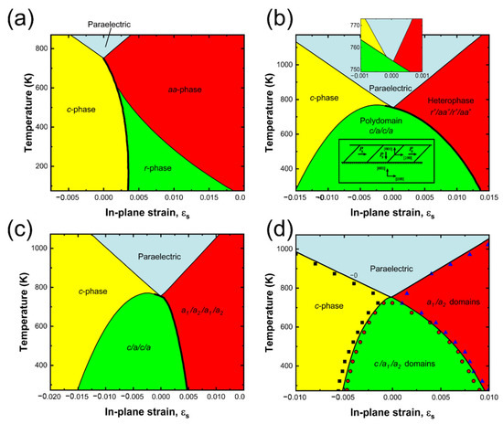 - Li, Y.L.; Chen, L.Q. Temperature-strain phase diagram for BaTiO3 thin films. Appl. Phys. Lett. 2006, 88, 072905. [Google Scholar] [CrossRef] [Green Version]
