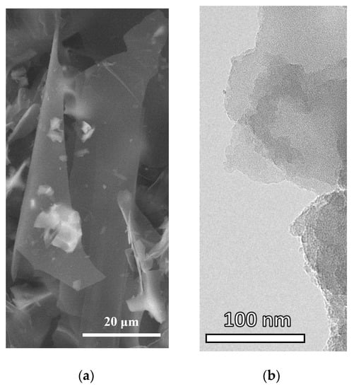 Figure 3 shows electron images of FLG-SHS obtained by SEM and TEM methods.