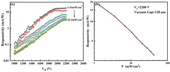- Bai, X.P.; Zhang, Z.P.; Chen, M.N.; Wang, K.; She, J.C.; Deng, S.Z.; Chen, J. Theoretical Analysis and Verification of Electron-Bombardment-Induced Photoconductivity in Vacuum Flat-Panel Detectors. J. Lightwave Technol. 2021, 39, 2618–2624. [Google Scholar] [CrossRef]
