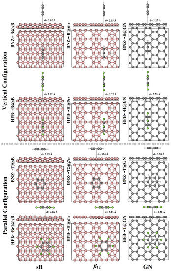 Ibrahim, M.A.A.; Mahmoud, A.H.M.; Soliman, K.A.; Mekhemer, G.A.H.; Ahmed, M.N.; Shawky, A.M.; Abourehab, M.A.S.; Elkaeed, E.B.; Soliman, M.E.S.; Moussa, N.A.M. Borophene and Pristine Graphene 2D Sheets as Potential Surfaces for the Adsorption of Electron-Rich and Electron-Deficient π-Systems: A Comparative DFT Study. Nanomaterials 2022, 12, 1028. https://doi.org/10.3390/nano12061028