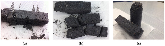 White cement mortar specimens with the Triton X-100 superplasticizer that were partially fractured during demolding: (a) electrical resistivity, (b) flexure, and (c) compression specimens.