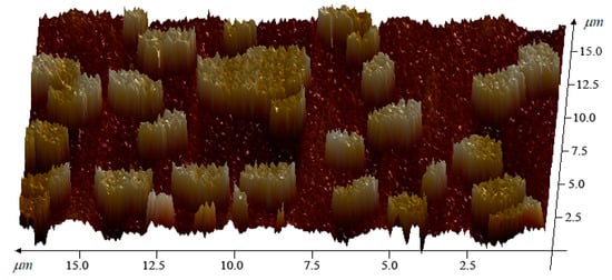 To further quantify the thickness of mechanically exfoliated MEG samples and their lateral dimensions, the dispersed MEG flakes were observed using atomic force microscopy, and the resulting three-dimensional atomic force microscopy images of MEG are shown in Figure 3.