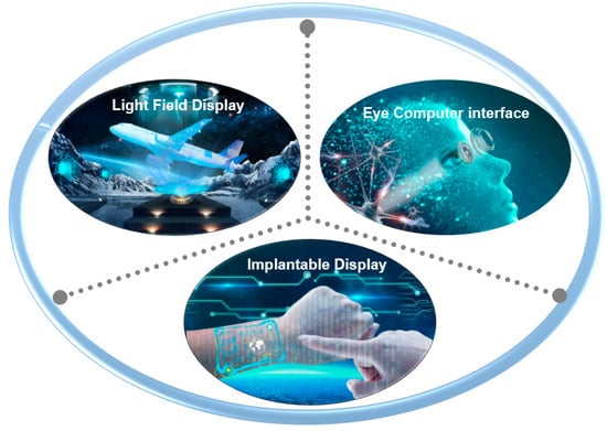 Closing the gap between the real world and display images to obtain a more realistic visual experience is the overall goal of display technology [1,2,3,4,5,6]. For this goal, nano-pixel light-emitting display (NLED) is an emerging display technology with ultrahigh pixel density higher than 10,000 pixel per inch [7]. Further reductions in pixel size to the nanoscale can enhance the sense of reality of display images and reduce the size of the display device. The key characteristic of NLED is that each pixel of NLED consists of multiple or even a single nanoscale light source. Thus, NLED is considered as the ultimate light source for light field displays, eye computer interface, and implantable displays (Figure 1) [7]. It is no doubt that the core component of NLED is the nanoscale light emitting device (nano-LED). Applying gallium nitride (GaN)-based LED technology to NLED is effective [8]. However, once the size of LED reduces to nanoscales, pixel-level driving is difficult, because the efficient electrical connection between the electrode array and the nano-LED array is challenging [9].