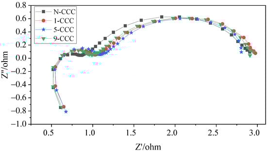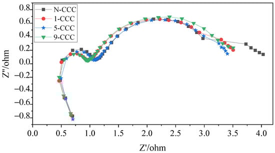 - After discharge of 150 min, the 5-CCC μDMFC has the lowest total impedance, whereas the N-CCC μDMFC has the highest total impedance. The 5-CCC has the most suitable gradient wettability and can effectively direct water towards the end of the CCC. Thus, it has more flow field channels and microporous channels and can provide more oxygen to the cathode of the μDMFC;