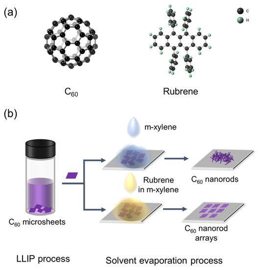 - Wang, L.; Liu, B.; Liu, D.; Yao, M.; Hou, Y.; Yu, S.; Cui, T.; Li, D.; Zou, G.; Iwasiewicz, A.; et al. Synthesis of Thin, Rectangular C60 Nanorods Using M-Xylene as a Shape Controller. Adv. Mater. 2006, 18, 1883–1888. [Google Scholar] [CrossRef]