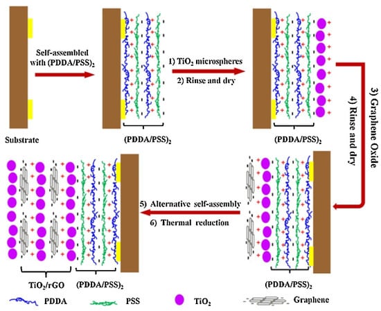 Fabrication illustration of TiO2/rGO multilayer hybrid film by layer-by-layer self-assembly. Reprinted with permission from Ref. [178]. Copyright 2017 Elsevier.