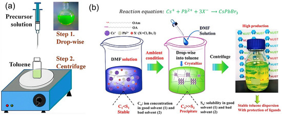 | CH3NH3PbBr3 | Ligand-assisted reprecipitation (LARP) | 70 | [110]/2015 |