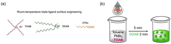 | CsPbBr3 | Room-temperature triple-ligand surface engineering | 93 | [112]/2018 |
