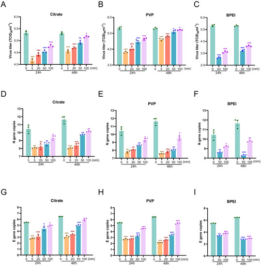 3.3. Effects of AgNPs on the Replication of SARS-CoV-2 in Vero E6 Cells