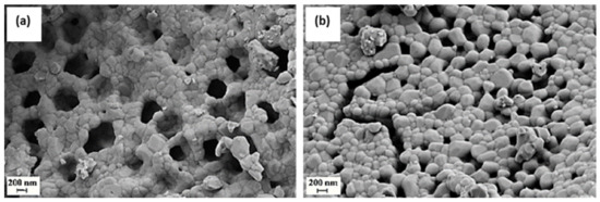 SEM images of the perovskite surface LFC(0.3)-Pd (a) and LFC(0.475)-Pd (b) after calcination in air at 900 °C/3 h. Reproduced with permission from Ref. [67]. Copyright 2010, Elsevier.
