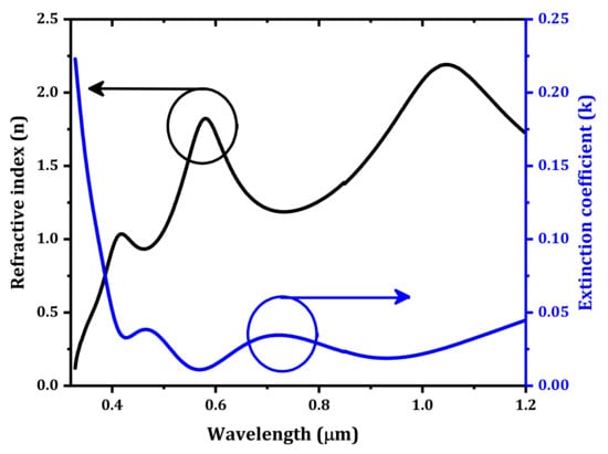 where is the IZTO thin film thickness, which is evaluated by ellipsometry at 300 nm. The extracted refractive index () and the extinction coefficient () are presented in Figure 3.