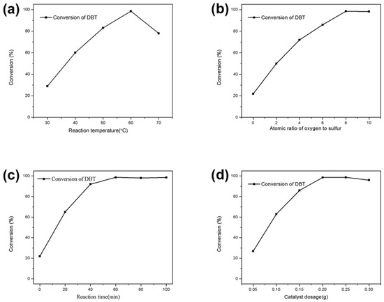 3.2. Oxidative Desulfurization Performance of the Catalyst